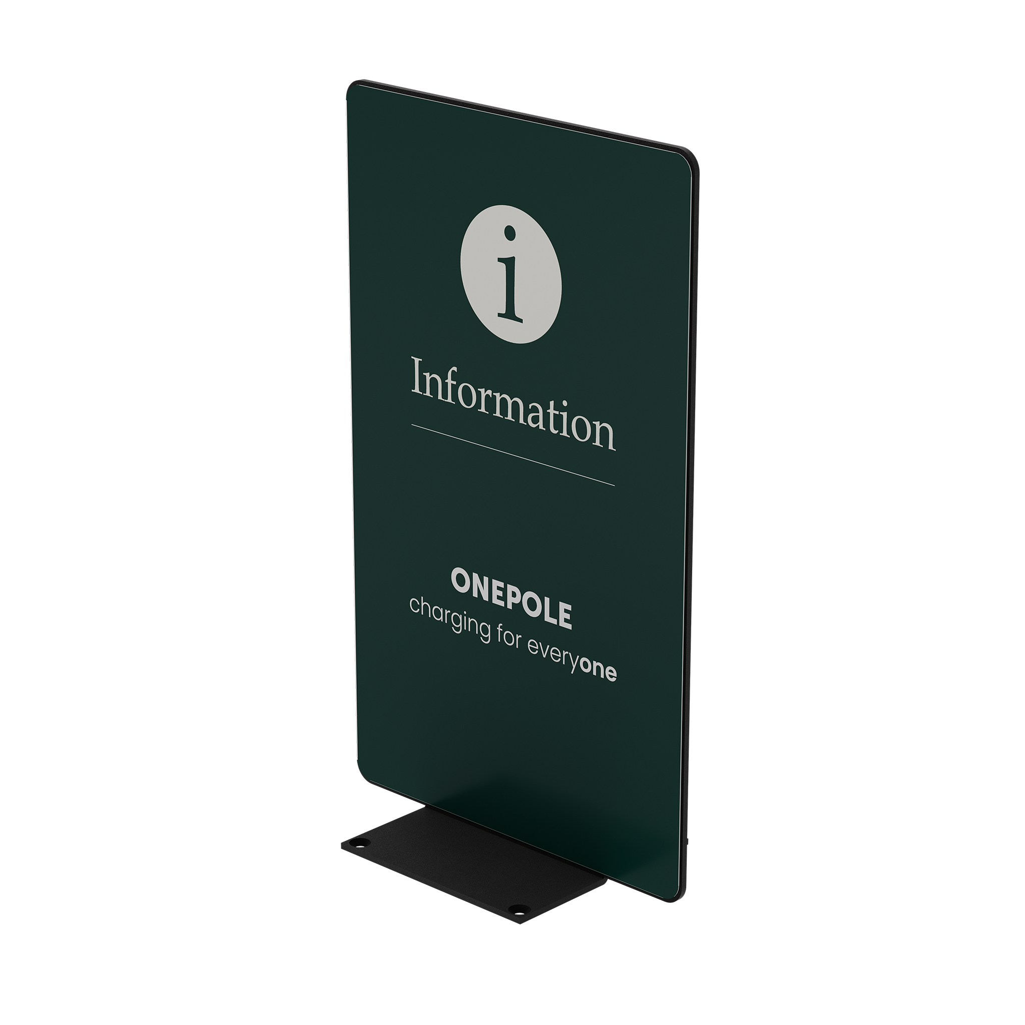 Elegant top-mounted information sign (350 × 210 mm), offering adaptable installation options. Designed to integrate seamlessly with the ONEPOLE PRO pedestal, ensuring a clean and consistent aesthetic